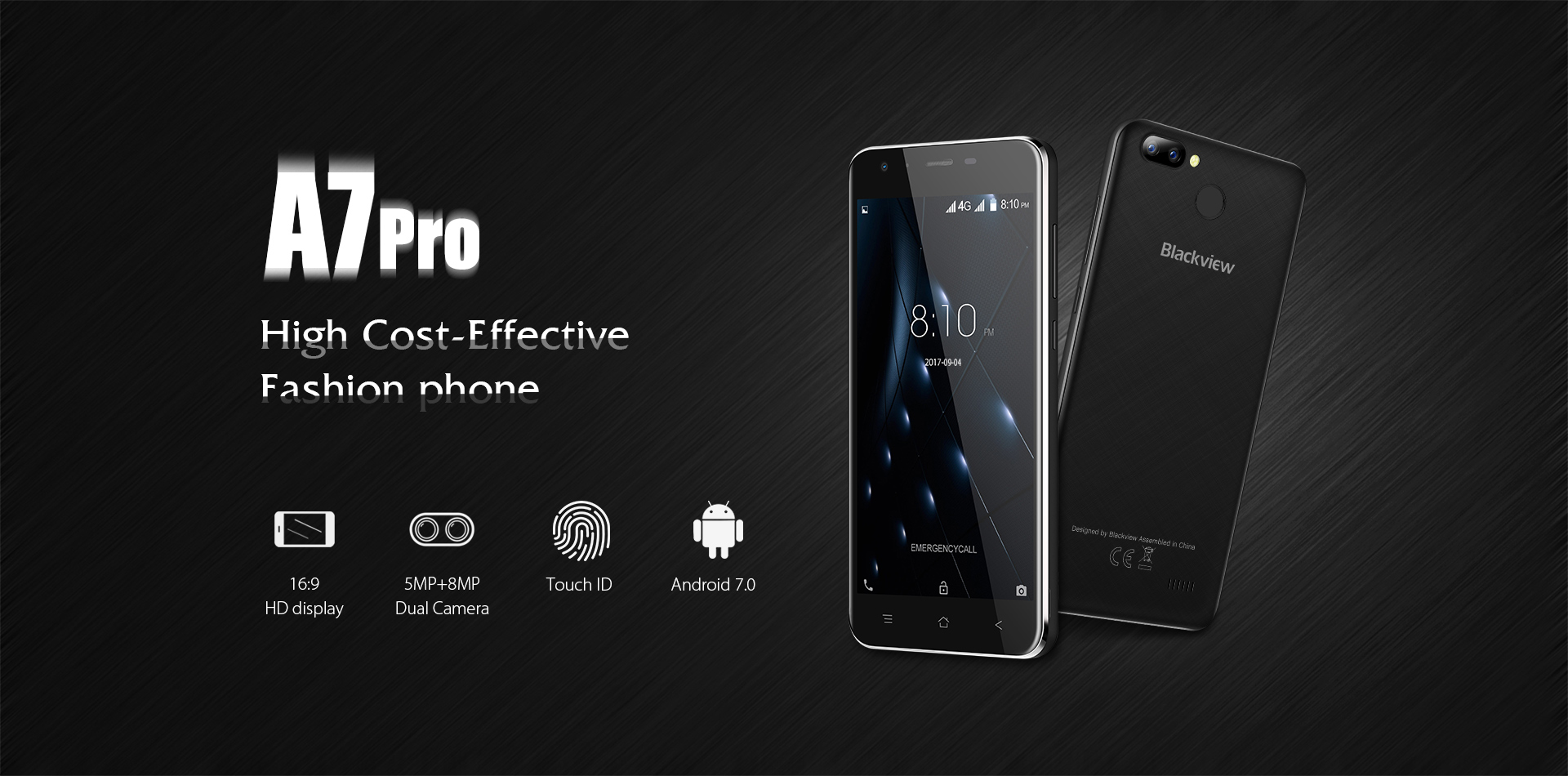 Blackview A7 Pro 4G Smartphone 5.0 inch Android 7.0 MTK6737 Quad Core 1.3GHz 2GB RAM 16GB ROM 8.0MP + 0.3MP Dual Rear Cameras Fingerprint Scanner.